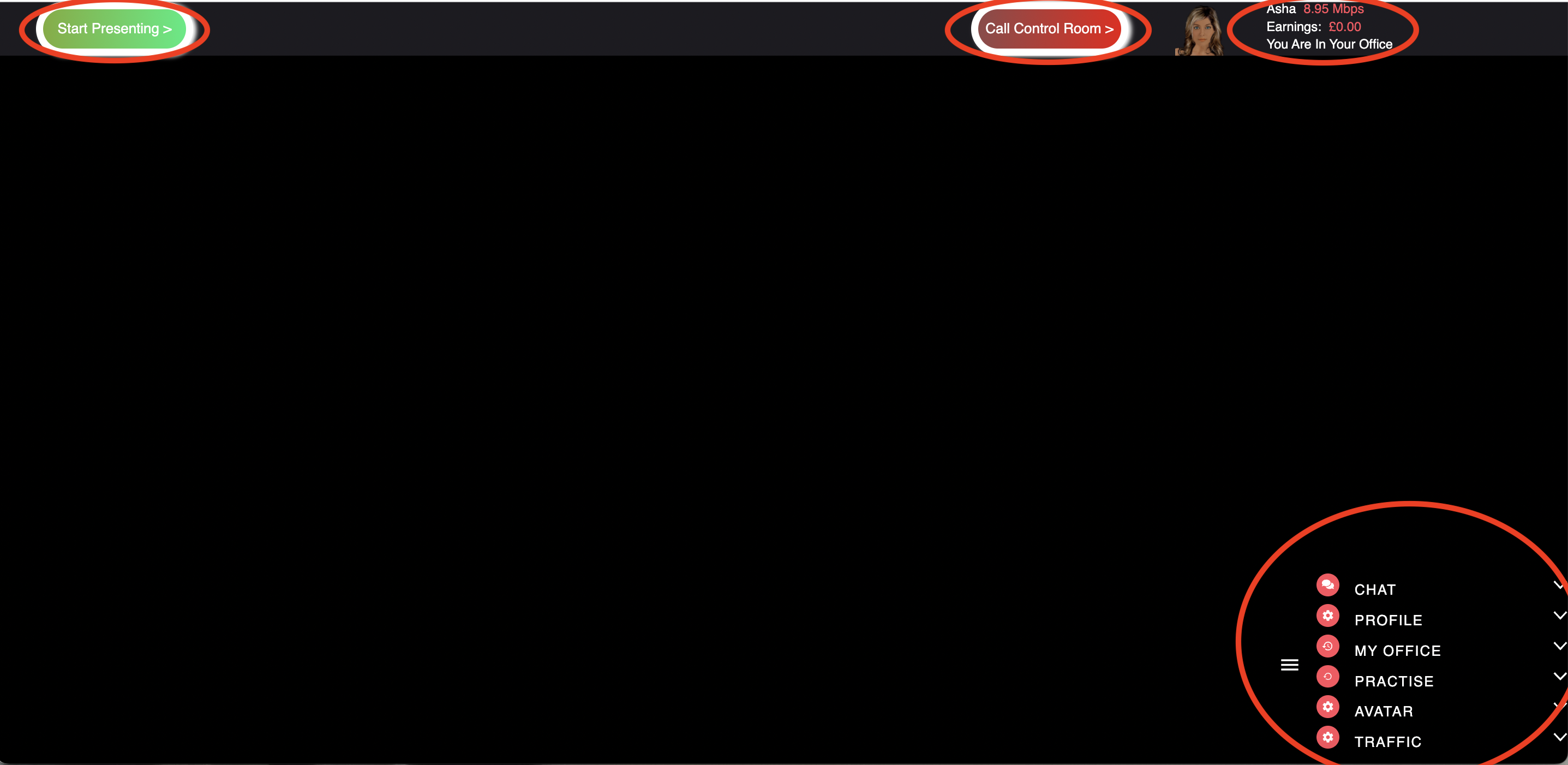 1. Start Presenting: Click on the green button to start presenting and initiate your check in with our Control Room staff.